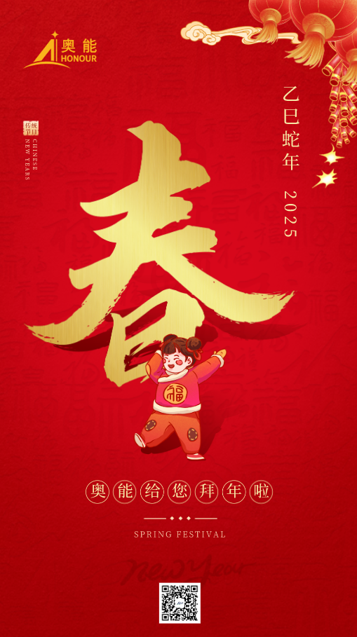 瑞氣盈門,新春將至。奧能公司全體員工向一直以來關心和支持我們的客戶、合作伙伴及各界朋友致以最誠摯的節日問候和最美好的新年祝福!愿大家在新的一年里萬事如意,幸福安康!